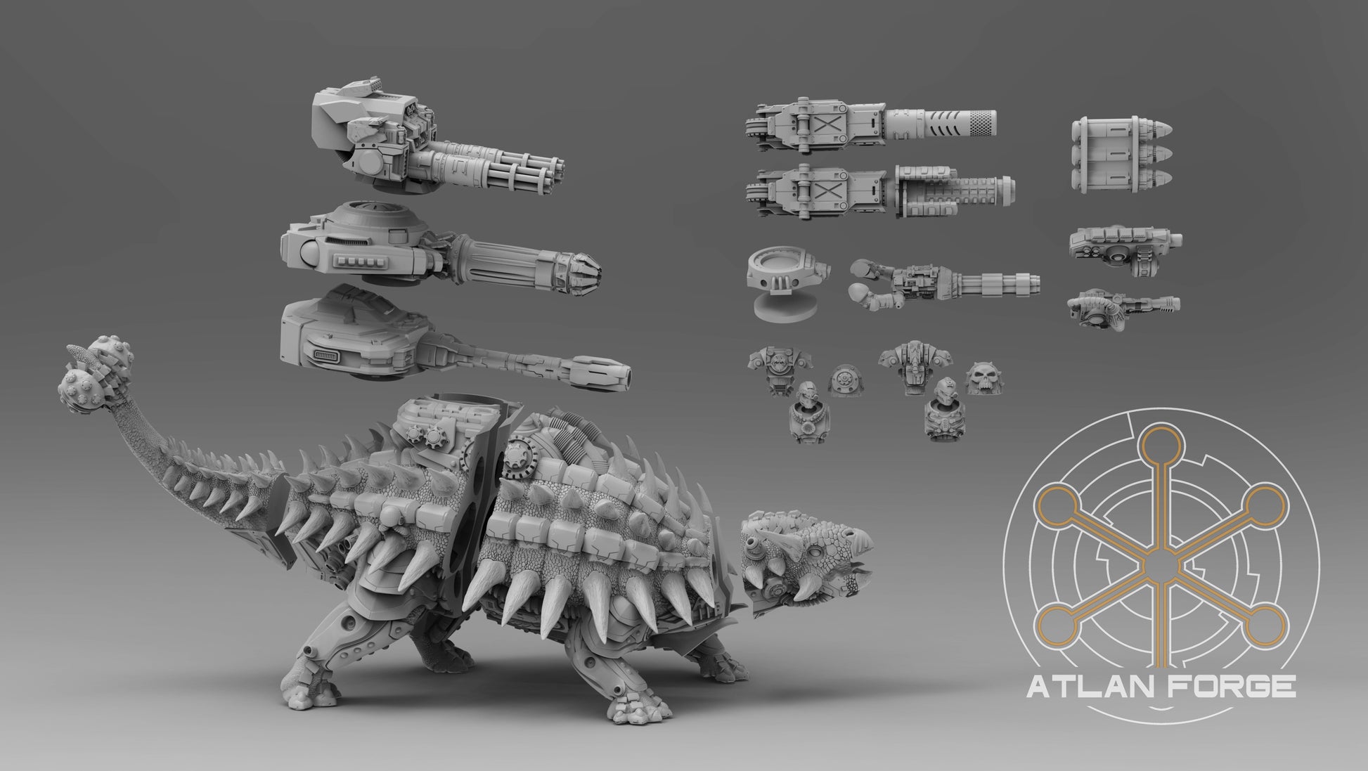 Incluye un modelo multicomponente de CyberAnyklosaur. All options included.